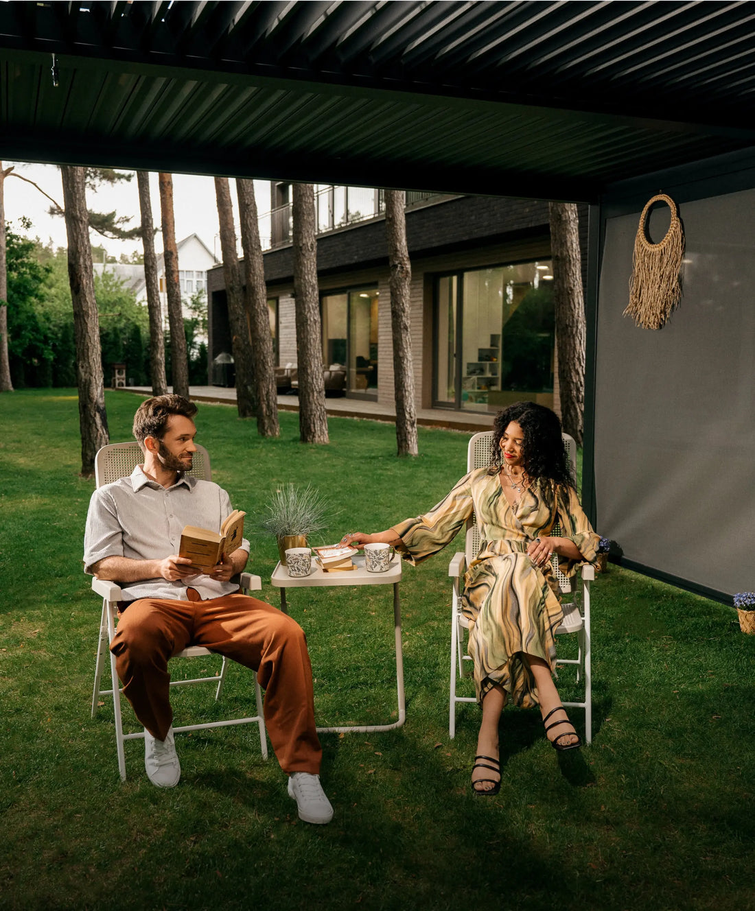 What stood out to me was its versatility and quality - the overhead slats not only provide adjustable sun and shade but also transform into a watertight roof, a feature we tested rigorously. This pergola, being easy to assemble like IKEA furniture and available in various sizes and colors, perfectly matched our vision for an outdoor room, blending practicality with style.