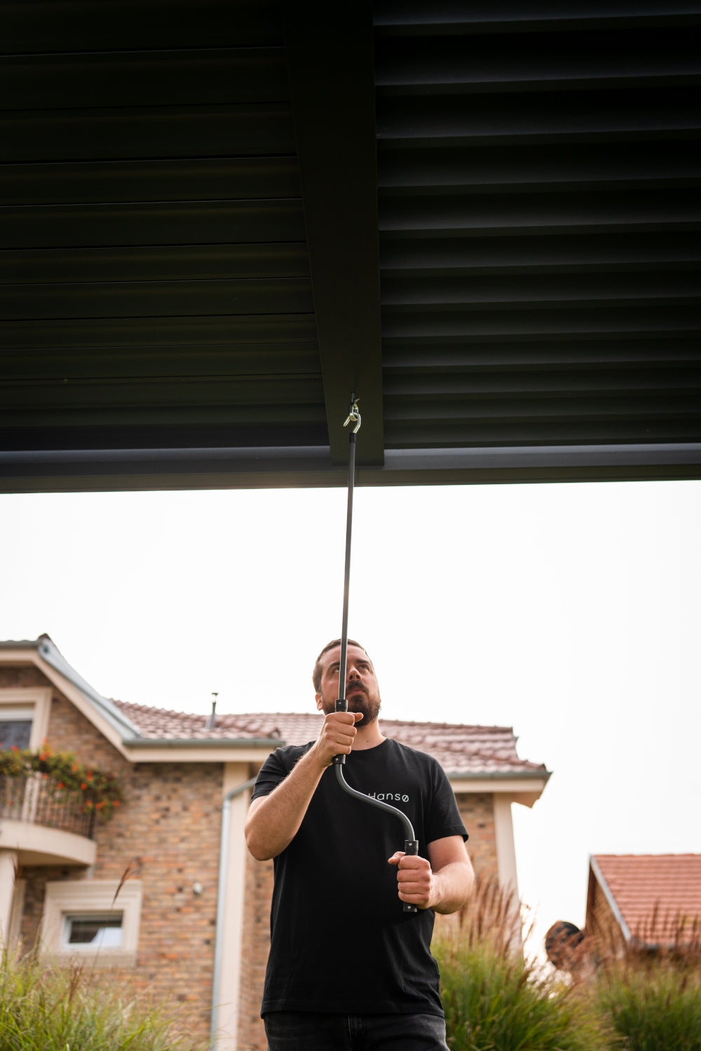 I was particularly excited to highlight the Hanso Pergola's role in transforming the space. This pergola, with its electrical slats, offers incredible versatility – easily adjustable for either full sunlight or complete shade. This addition alone significantly elevated the entire project, demonstrating how a well-chosen structure can transform an outdoor space into an inviting, year-round living area.