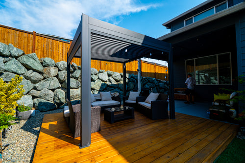 My main purpose in purchasing was to protect my furniture from the elements, but on hot days I have enjoyed the shade. The electric roof is a great feature and I enjoy opening it to see the sky and closing it to avoid the rain. I am very happy with the Hanso pergola. It adds an element of luxury to our backyard.