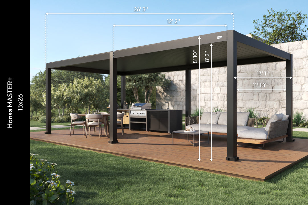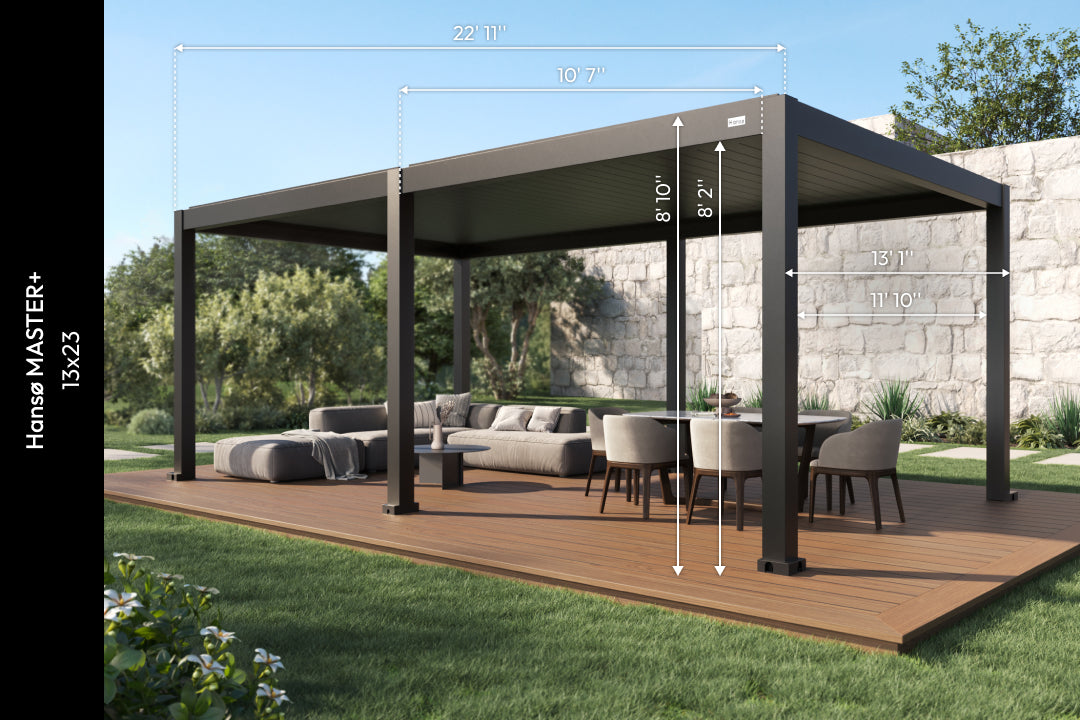In summary, the Hansø Master+ Pergola delivers custom pergola quality without the custom pergola price. It’s engineered to excel in every aspect, making it the ultimate choice for those who demand the best in outdoor luxury.